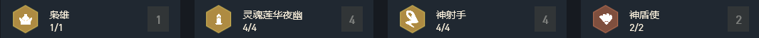 1枭雄&4灵魂莲华夜幽&4神射手&2神盾使