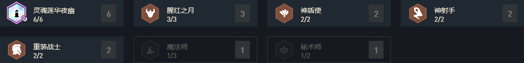 6灵魂莲华夜幽&3腥红之月&2神盾使&2神射手&2重装战士