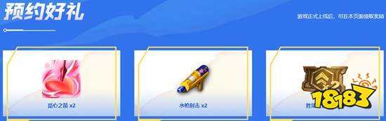 预约成功后可在页面领取:觅心之剑*2、水枪射击*2、与一张胜场双倍经验卡。