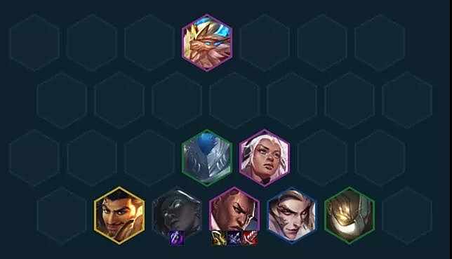 5-1拉8上芮尔补2铁甲,之后大D找阿克尚,来得越早前3率越高,后期再慢慢给阿克尚抓装备。后期如果卢锡安有个五六只左右这把基本8人口玩到死追3星卢锡安,但血量很健康建议拉9搜2星阿克尚稳定提升,9人口上佛耶戈开双刺可打控制,或者上武器开3铁甲。