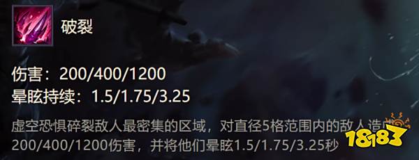 解析:虚空恐惧前排肉坦,有着非常大范围的控制与伤害,在对局中起着巨大作用。