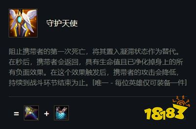 阻止携带者的第一次死亡,将其置入凝滞状态作为替代。在秒后,携带者会返回,具有生命值且已净化掉身上的所有负面效果。在这个效果触发后,携带者的攻击会降低,持续到战斗环节结束为止。[唯一 - 每位英雄仅可装备一件]