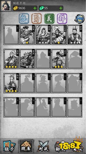 我们进游戏面临的第一个选择就是关于阵营的,游戏分为魏、蜀、吴、群英四个阵容,初始卡牌阵容在魏、蜀、吴之间选择,群英阵容为通用,可搭配任意阵容卡牌组成卡组。