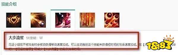 厄运小姐在不被攻击时会被动获得移动速度加成。可以主动施放这个技能来获得短时间的攻击速度加成。在【大步流星】尚未冷却完毕时,【厄运的眷顾】可减少【大步流星】的剩余持续时间。