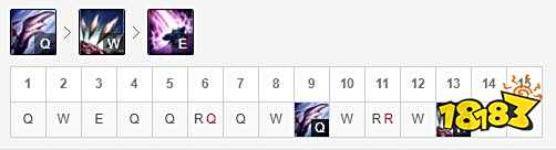 主Q副W,Q技能是螳螂主要的输出爆发技能,E技能减速更方便螳螂GANK。进化顺序为Q-R-E。