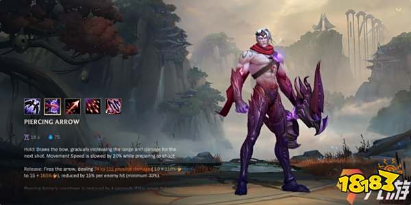 释放:将箭射出造成10+110%AD~15+165%AD的物理伤害,每命中一名敌人伤害就会降低15%,最低为33%。如果穿刺之箭引爆了至少一名敌人身上的枯萎效果,那么该技能冷却缩减4秒。如果蓄力超过4秒没有释放,该技能取消,返还50%的法力值消耗。