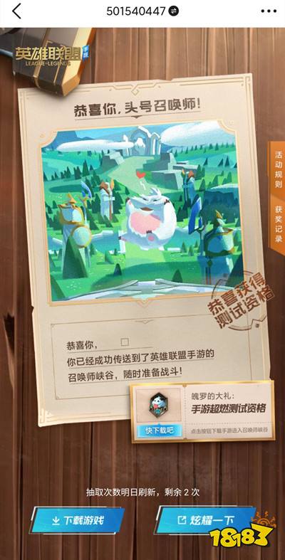 3. 召唤师通过官方活动页面参与资格抽取,获取到资格后即可在活动页面直接下载客户端。
