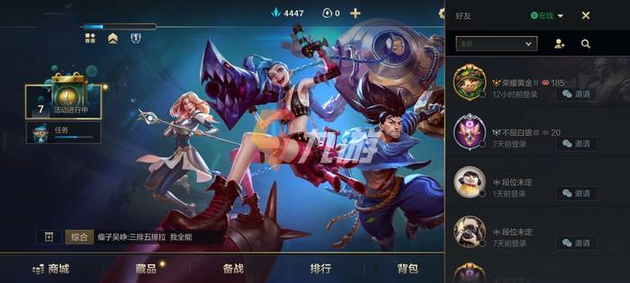 登陆游戏后,在主界面的右侧可以看到好友列表,这其中有游戏好友、某信好友、亲密好友。其中某信好友是自动添加的,只要你的微信好友中有玩过英雄联盟手游的都会自动显示在这里,点击旁边的邀请就可以给好友发通知邀请其上线。