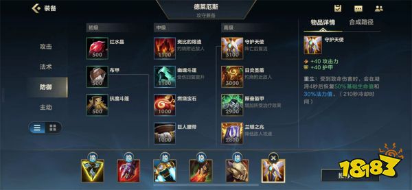 剩下就是补充防御装备。死者肩甲这是另一件可以提供移动速度加成以及 生命值 和护甲的物品。复活甲则是容错装备了。