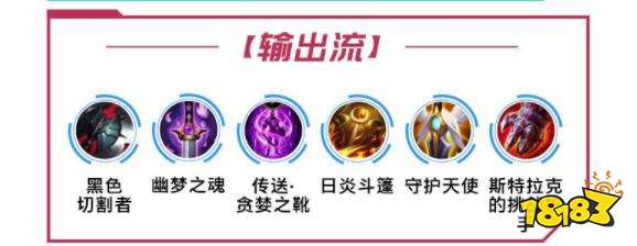 输出流出装:黑色收割者+幽梦之魂+传送·贪婪之靴+日炎斗篷+守护天使+斯特拉克的挑战护手