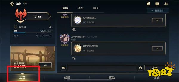 2、进入公会界面,点击左下角的主页。