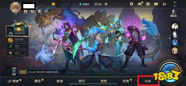 1、打开游戏,进入游戏主界面,点击右下角的公会。