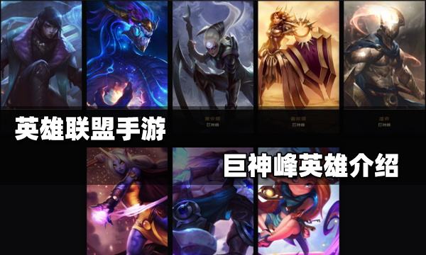 英雄联盟手游巨神峰英雄有曙光女神、皎月女神、众星之子、不屈之枪、暮光星灵、瓦洛兰之盾、奥瑞利安索尔、残月之肃,目前暮光星灵、残月之肃、瓦洛兰之盾还未在手游中上线。