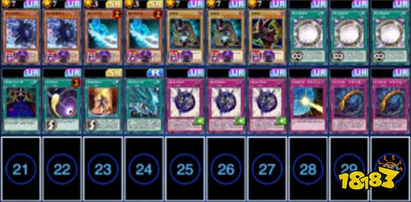 一般ur卷四张,黑魔导2、魔导士2,一般sr卷四张,黑魔导强化2,墓地封印1,夜末巫师1。梦幻ur,导航1。梦幻sr,狡猾1。