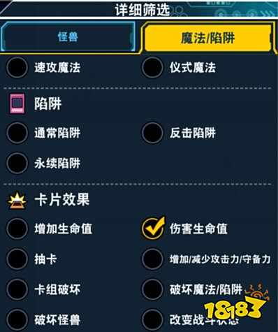 找这类卡的方法是在编辑卡组的时候,在筛选里可以看到魔法陷阱卡那里有个伤害生命值的分类,勾上就能看到这些卡了
