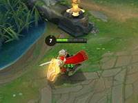 亚瑟向目标跳跃,造成法术伤害,并召唤圣印,击飞目标周围的敌人并在圣印上造成持续的法术伤害。