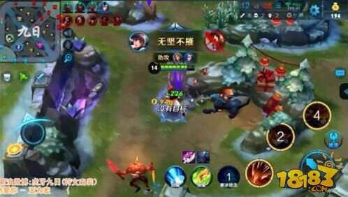 在队友们都准备放弃投降的时候,九日稳住局面,牵制节奏,指挥作战。由于娜可露露是队伍中的主要经济输出,导致被对面针对,经常3、4个人追他一个人,同时恰巧给自己队中的四个小白4打1的机会,这一定是剧本!