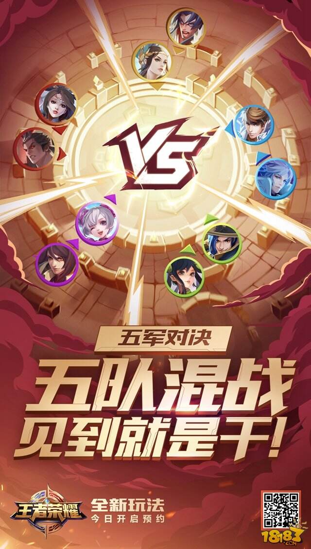 12月27日,五军对决模式登陆《王者荣耀》体验服。五边形的地图,不一样的游戏规则,五军对决模式给玩家带来了全新的刺激体验。近日,《王者荣耀》又推出了五军对决模式的系列海报。