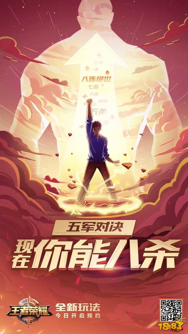 “现在你能八杀”,五军对决模式中,不再是传统的红蓝阵营,而是10位玩家分为五个阵营。2V8,玩家不仅仅可以达成三杀、五杀的成就,更可以达成八连绝世的新成就!