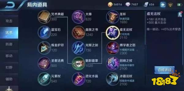 2:先出小件魅影面罩,不合成痛苦面具,之后选择在第四或第五件装备买出虚无法杖(一般这个时候坦克已经买出魔女斗篷)