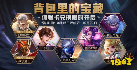 5、 体验卡兑换开启:李白、诸葛亮、孙尚香、阿轲-爱心护理陪你酣战一周