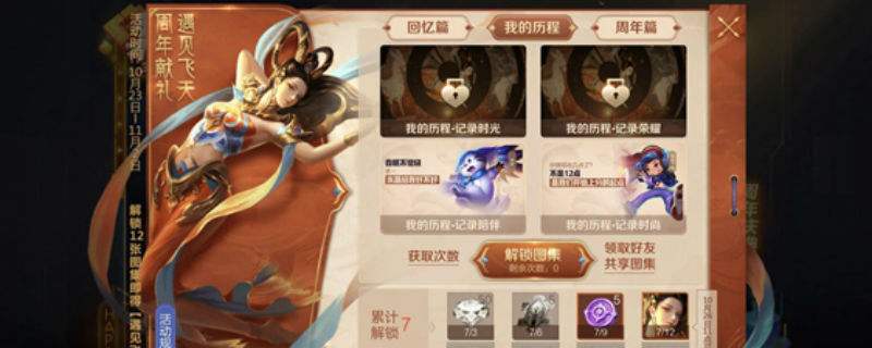 王者荣耀共享图集周年庆是获得杨玉环周年庆皮肤获得的方法。具体方法就是从游戏内的活动页面进入,在回忆篇和周年篇中选择自己已经解锁的图集中,点击对应的图片分享出去,分享到QQ群/微信群/朋友圈都是可以的。而我的历程里面的图片是不能共享的。