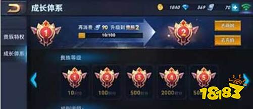 1、贵族是王者荣耀内尊贵的身份表示,贵族特权1仅需要10点积分也就是1RMB就可以开启了。