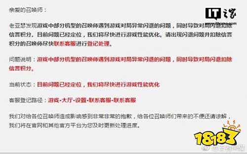 请出现闪退问题并扣除信誉积分的召唤师尽快联系客服进行登记哦~ 我们核实情况属实后,会进行信誉积分补偿。