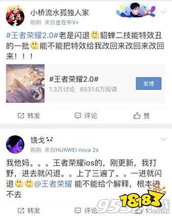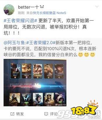 刚更新王者,型号荣耀v9,打了第一把一次闪退,第二把两次闪退,第三把三次闪退???之前从来没试过,一更新就出事,掉星还被举报??特地上tap看了,王者你是不是对华为有点偏见啊