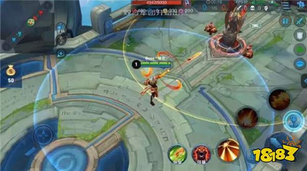 然后战斗开始之后直接推塔,大家都知道在墨家机关道这个地图,后羿是可以站在塔外A塔的,这个时候什么都不用管,直接推塔就行。