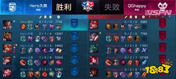 Game 1:Hero久竞蓝色方,QGhappy久竞红色方