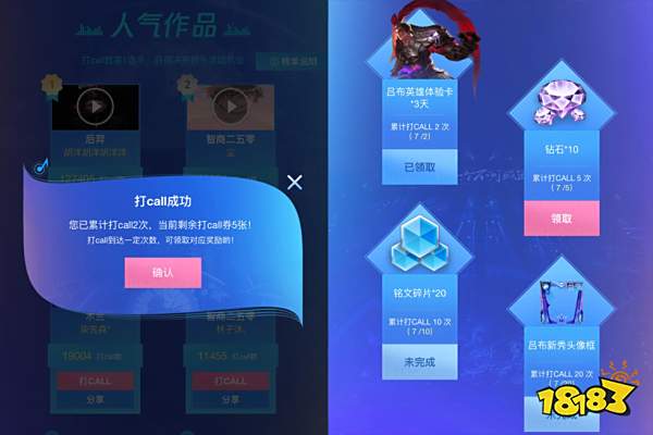 参与活动拥有吕布英雄可以获得三张打call票,其余每日登录和分享可以获得四张票,累计打call二十次可以获得四个奖励,其中包括新头像框。