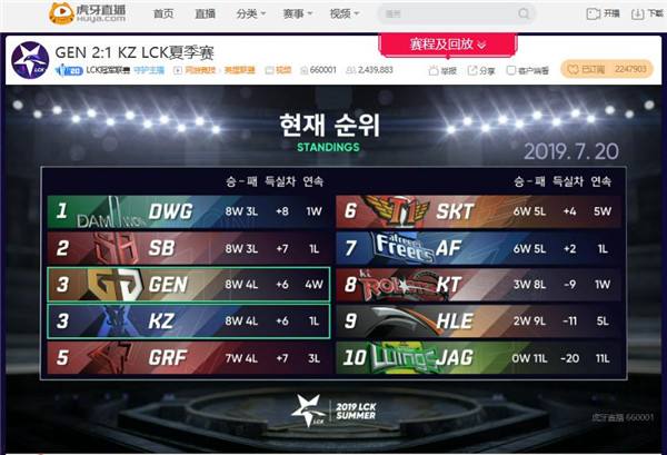 7月20日,LCK第六周周末大战精彩开战。首战DWG迎战GRF,虽然此前从未战胜过GRF,但准备充足的DWG终于在本场比赛中完成复仇,他们以GRF最擅长的团战能力击败对手拿下胜利。第二场GEN迎战KZ,秋之CuVee愈发神勇,一手单带让LCK闻风丧胆,虽然KZ拿下首局,但整体状态更佳的GEN连续两局完成翻盘,让一追二再斩榜首。