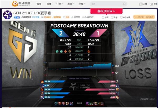 第二场GEN迎战KZ:进入夏季赛,那支熟悉的冒泡赛之王终于回来了,本以为他们会在魔鬼赛程中掉队,但愈战愈勇的他们反而连续将三支榜首战队斩落马下。首局GEN主打CuVee单带配合岩雀蝎子的团战体系,KZ偏向对线打出优势。对线期KZ果然打出优势,先是亚索双杀加上下路连续击杀Ruler,然后Rascal单杀CuVee锦上添花,KZ前期对线取得巨大优势。中路一波团战收掉GEN上野后,KZ拿下大龙赢下首局。