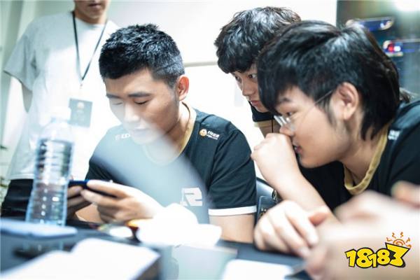 RNG.M的选手也一样,大家围在一起进行讨论。