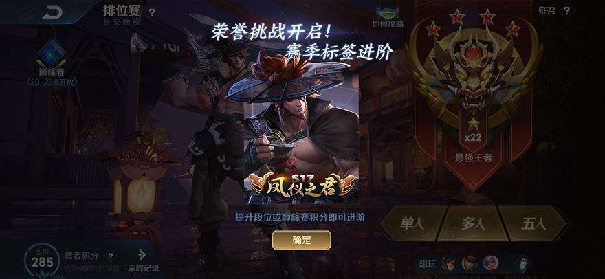 1、从S17赛季开始,每个赛季大家的最高段位达到最强王者的时候,就可以开启当前赛季的荣誉挑战任务。在顺利完成任务之后,大家就可以获得赛季皮肤标签进阶的资格,即可对当前赛季的赛季皮肤标签进行进阶了。