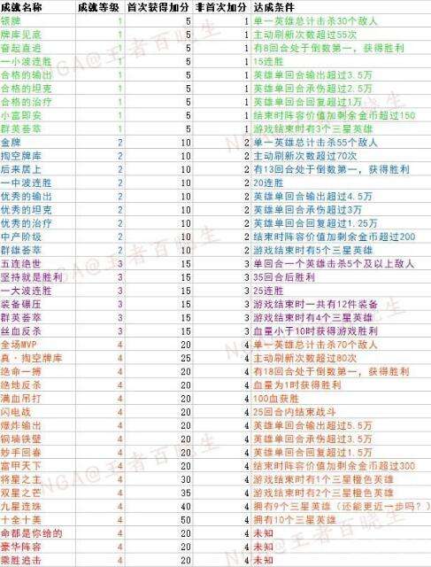 绿色成就、蓝色成就、紫色成就和金色成就,我们从图表中可以看到绿色成就首次完成能加五分,并且非首次只会加1分,达成要求比较低;