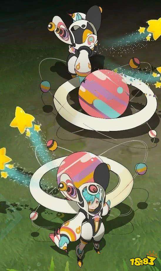 我们再来看看局内的表现效果,首先是一技能,挂在敌人头上之后变成了势头盘旋的飞船,并且在叠满被动爆炸的时候,飞船向四面三开,伴随着小行星一闪而过,而且仔细看普攻的轨迹,飞出去的小行星尾巴还带着金色五角星的轨迹,无论是效果还是创意都堪称脑洞大开!