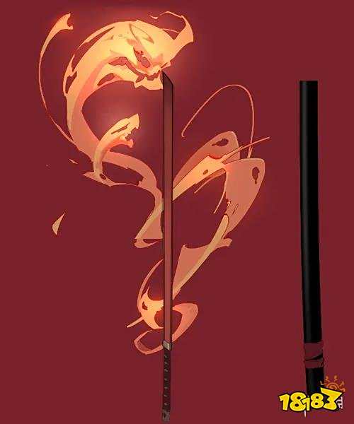 在武器设计上,保留了橘右京的武器——【自作·无铭】的外形锚点,通过风格化处理,并设计了火魂元素作为战斗时的特效,使其更加巧妙地呈现出皮肤的主题。