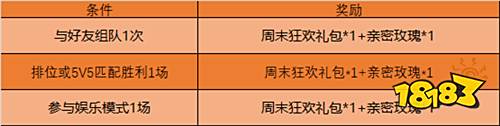周末峡谷开黑得亲密玫瑰,与基友、战友、恋人、师徒等组队参与对局领亲密玫瑰!