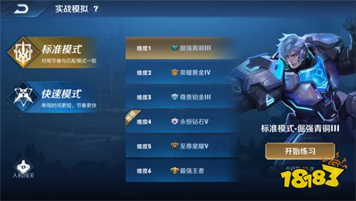 我们将实战模拟和人机挑战合入了同一个界面,大家可以在大厅->竞技对抗->5V5王者峡谷->人机 找到他们,对应的,实战模拟的原来的入口将会被取消。