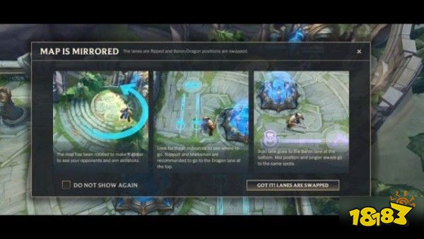 事实上,这种命名和PC主流玩法还是一样,双人组靠近小龙和红buff野区,而上单靠近大龙和蓝buff野区。由于视角的翻转问题,如果将英雄联盟PC版本那样,继续将双人组称为“下路”就会为玩家带来困惑,所以设计师重命名为“小龙路”,也就是靠近龙坑的那条对位路。
