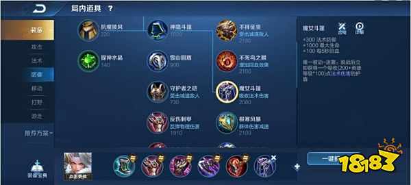 4、最后一件装备根据战况选择,首选魔女斗篷,既有护甲,又加魔抗。