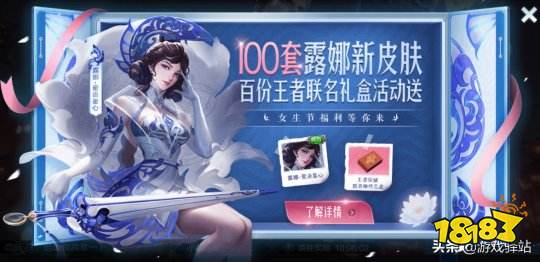 另外女神节专属福利上线,参与活动的玩家不仅有机会拿到王者联名礼盒,官方还将送出100套露娜新皮肤—瓷语鉴心,还未拥有该皮肤的玩家可通过游戏内的推荐活动面板参与看看!