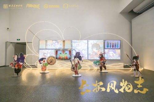 第三朵花,最早可以在西安美术馆找到,馆内是王者荣耀首次落地的风物志高校共创IP艺术展。西安美术学院集动画、数字媒体艺术、视觉传达、环境艺术设计、公共艺术、雕塑等数10个专业的20余名老师和近200名同学,群策群力,创作作品范围涉及二维动画、三维动画、综合材料壁画、新媒体互动装置、木雕、皮影、绘画等等,用丰富多彩的表现形式,开启人们对长安的无限遐想,构筑出一个沉浸式的艺术展。
