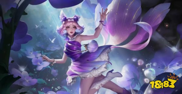 因为皮肤是勇者级别,建模也是以紫色为主,所以技能特效也是以紫色为主:普攻为蓝色水晶样式的爱心,1/2/3技能都加入了不规则的镜面切割效果,平A、技能释放和命中目标时皆有紫罗兰花瓣掉落的特效。