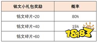 2. 活动期间,通过朋友节集合页页面进入不同活动即可完成打卡,打卡2、4、6、8个活动可分别获得铭文小礼包*1(打开后可随机获得以下奖励之一:铭文碎片*60、铭文碎片*40、铭文碎片*20)、皮肤体验卡一日礼包*1(打开后任意选择以下奖励之一:西施-归虚梦演皮肤体验卡(1日)、澜-孤猎皮肤体验卡(1日)、姜子牙-时尚教父皮肤体验卡(1日)、花木兰-兔女郎皮肤体验卡(1日)、孙尚香-水果甜心皮肤体验卡(1日)、钻石*5。)、不咕鸟*1、友谊币*5等奖励;