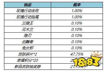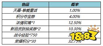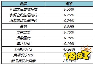皮肤碎片&积分自选礼盒:打开礼包可任意选择以下奖励之一:荣耀积分*10或皮肤碎片*1