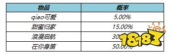 打开后可随机获得以下表情之一:在你身策、浪漫启程、甜蜜归家、qiao可爱