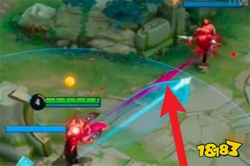 2、等第二个一技能cd好了,然后第二条线拉到范围提示的最远处。